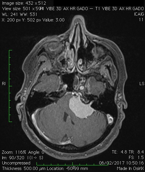 Méningiome de l’angle pontocérébelleux gauche