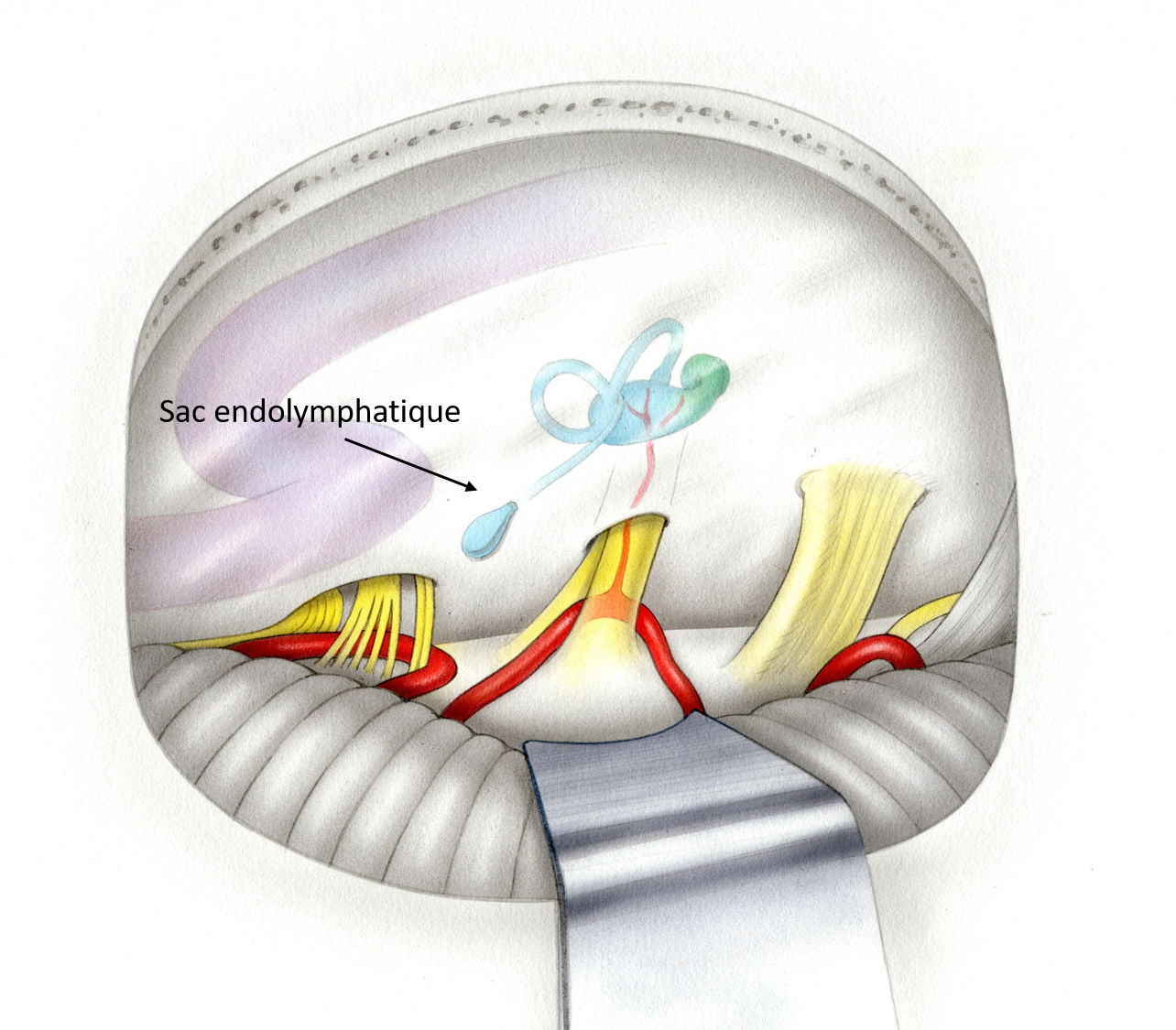 Ouverture du sac endolymphatique (d’après Jackler, ATLAS OF SKULL BASE SURGERY & NEUROTOLOGY. Thieme. ©2009)